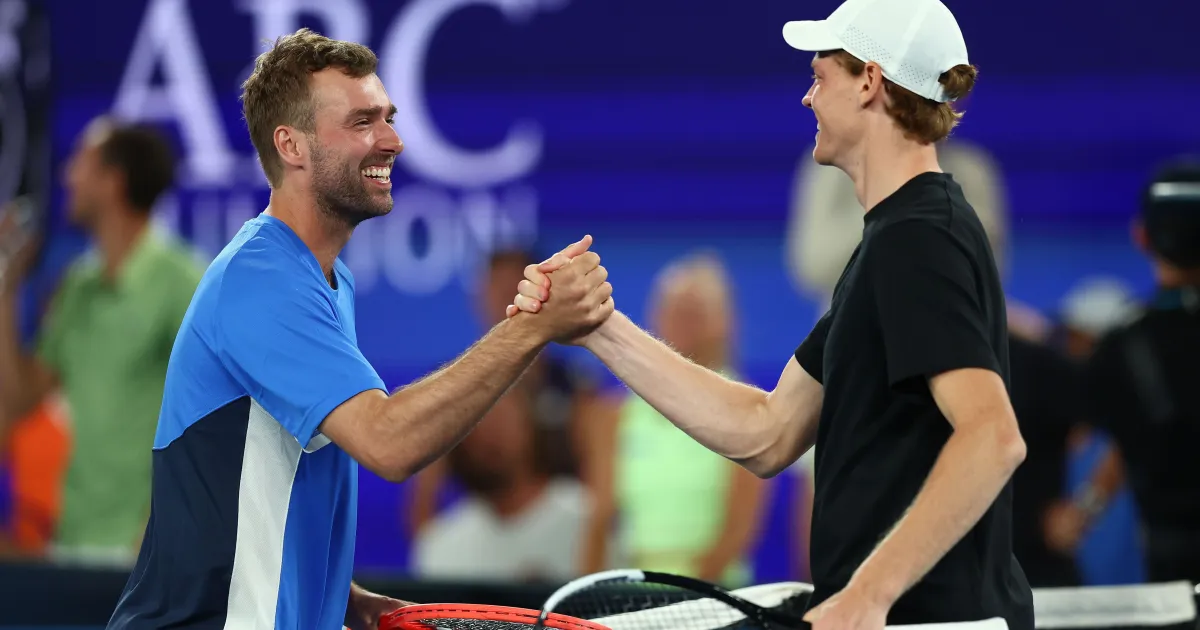 O tenista amador Jordan Smith conseguiu eliminar Jannik Sinner, bicampeão do Australian Open e número 2 do mundo, na disputa do 1 Point Slam, divertida exibição que antecede o primeiro Grand Slam da temporada. pic.twitter.com/20dtykxKKb