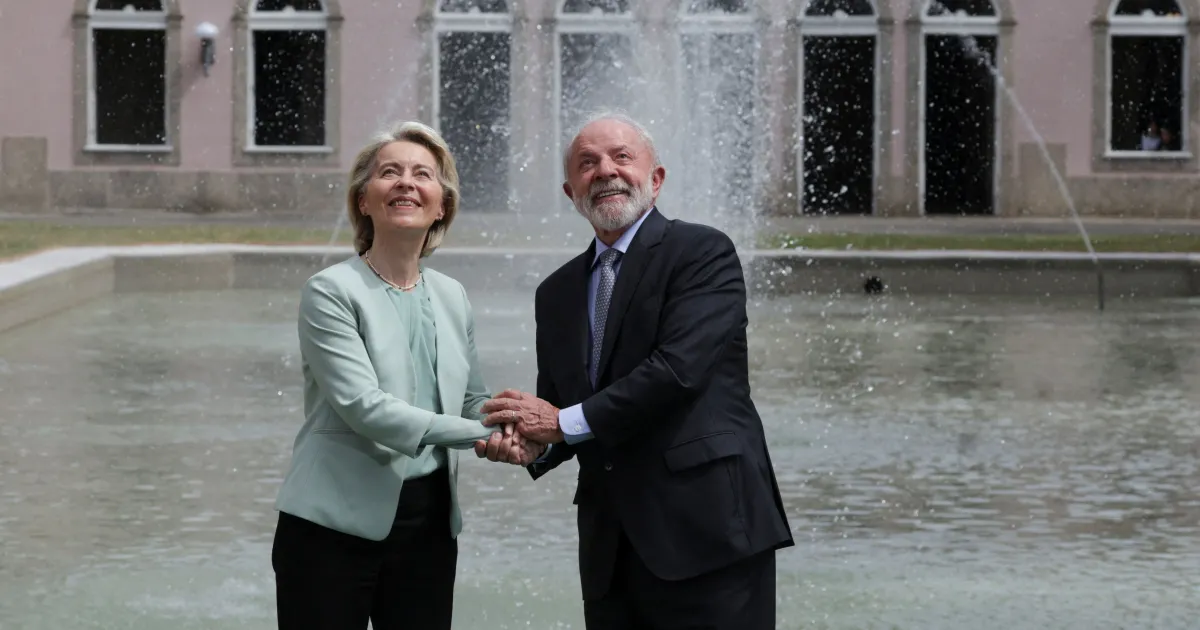“O acordo Mercosul-UE multiplicará oportunidades como nunca antes. Com acesso mútuo a mercados estratégicos. Regras claras e previsíveis. Padrões comuns. E cadeias de suprimento que se transformam em verdadeiras rodovias para investimentos”, declarou ela, durante pronunciamento no Palácio do Itamaraty, no Rio de Janeiro, onde se encontrou com o presidente Luiz Inácio Lula da Silva nesta sexta (16).